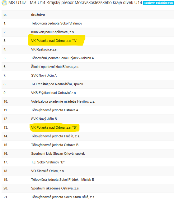 MS-U14Z – skupina MS-U14Z . Děvčata z týmu A se umístila na 3.místě a v soutěži U16 na 20 místě z 33.týmů. Družstvo B obsadilo 13. místo z celkového poštu 21 týmů.