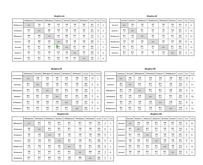 V sobotu jsme uspořádali BMV pro tři barvy, modrá , červená a oranžová, kde jsme hostili 90 dětí z Polanky, Karviné Brušperku, Raškovic a Kozlovic. Naše holky se nezahálely a v oranžové barvě obsadily 3.místo, v modré a první a třetí a červené první a druhé místo. Holkám a trenérům veliká gratulace. Velké díky patří všem pořadatelům, kteří to zvládli na jedničku!!!! Veškeré fotky jsou v galerii.